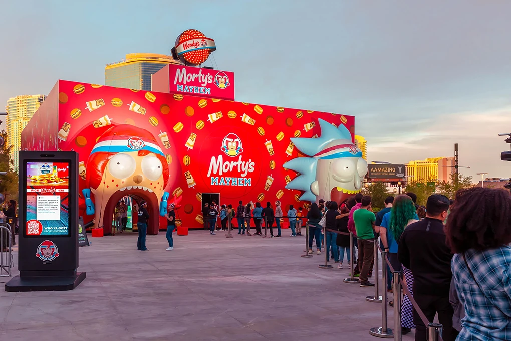 Before SpongeBob, we had the incredible opportunity to collaborate with Wendy’s on another exciting project: a Rick and Morty giant inflatable tunnel, also for the drive-thru. This collaboration was part of a promotional tie-in between Wendy’s and the popular animated series, designed to capture the surreal energy of the show and inject it into the fast-food experience. The inflatable tunnel was made out of Rick and Morty's giant heads, allowing fans of the show to immerse themselves in the chaotic world of interdimensional adventures, without even leaving their car! It was an innovative way to make the drive-thru experience feel more like a trip through a portal into another dimension—one with a Wendy’s meal at the other end!